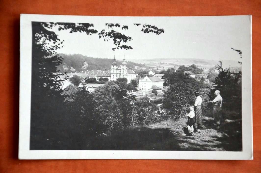 ŽELIV výhled na kostel lidé okres Pelhřimov 1946