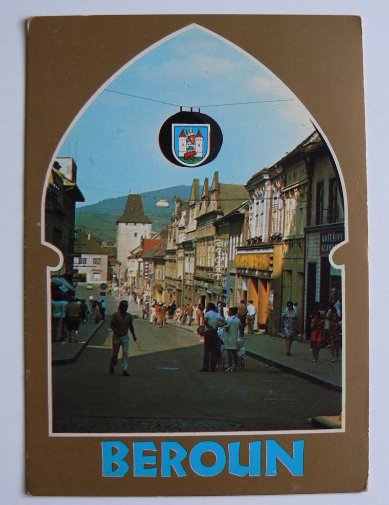 - BEROUN erb průhled Plzeňskou branou do Palackého ulice