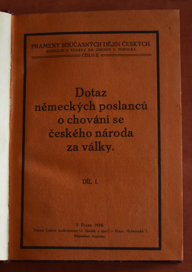 DOTAZ NĚMECKÝCH POSLANCŮ O CHOVÁNÍ SE ČESKÉHO NÁRODA ZA VÁLKY I. a II. díl