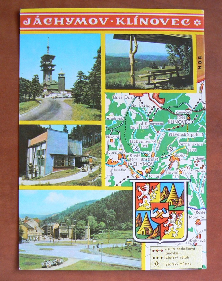 JÁCHYMOV - KLÍNOVEC okénková koláž mapka erb okres Karlovy Vary ORBIS (70. léta)