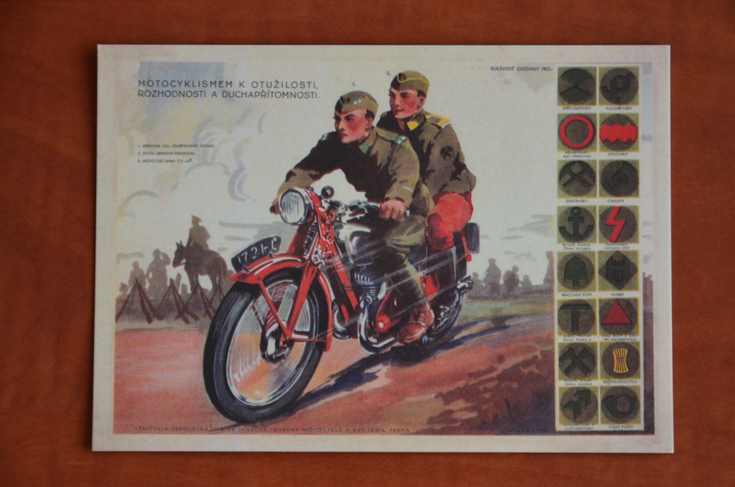 Motocykl JAWA 175 Zbrojovka Ing. Fr. Janeček Praha reklama armádaSkladem10 Kč/ ks