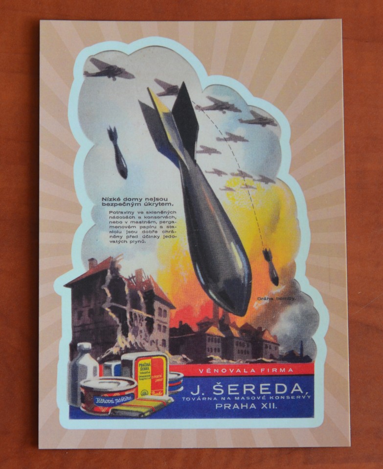 Nízké domy nejsou bezpečným úkrytem J. ŠEREDA Praha továrna na masové konservy reklama armáda