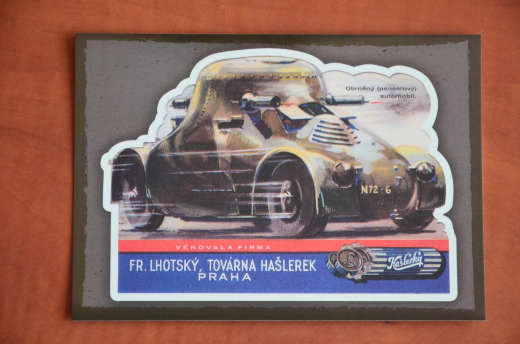 Obrněný (pancéřový) automobil FR. LHOTSKÝ Praha Továrna Hašlerky reklama armádaSkladem10 Kč/ ks