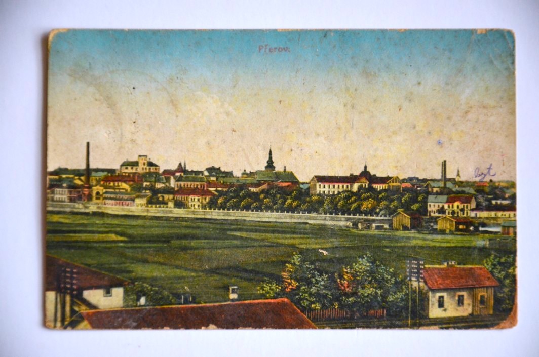 - PŘEROV střed města železnice nádraží vlaková pošta Uherské Hradiště - Kunovice 1926