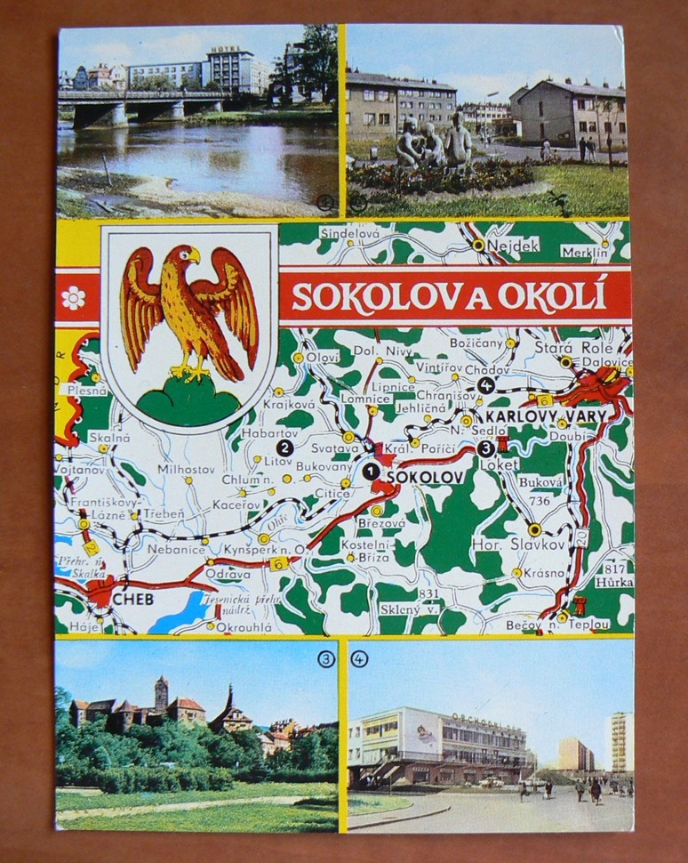 SOKOLOV a okolí okénková mapka erb Habartov Loket Chodov ORBIS (70. léta)Skladem25 Kč/ ks