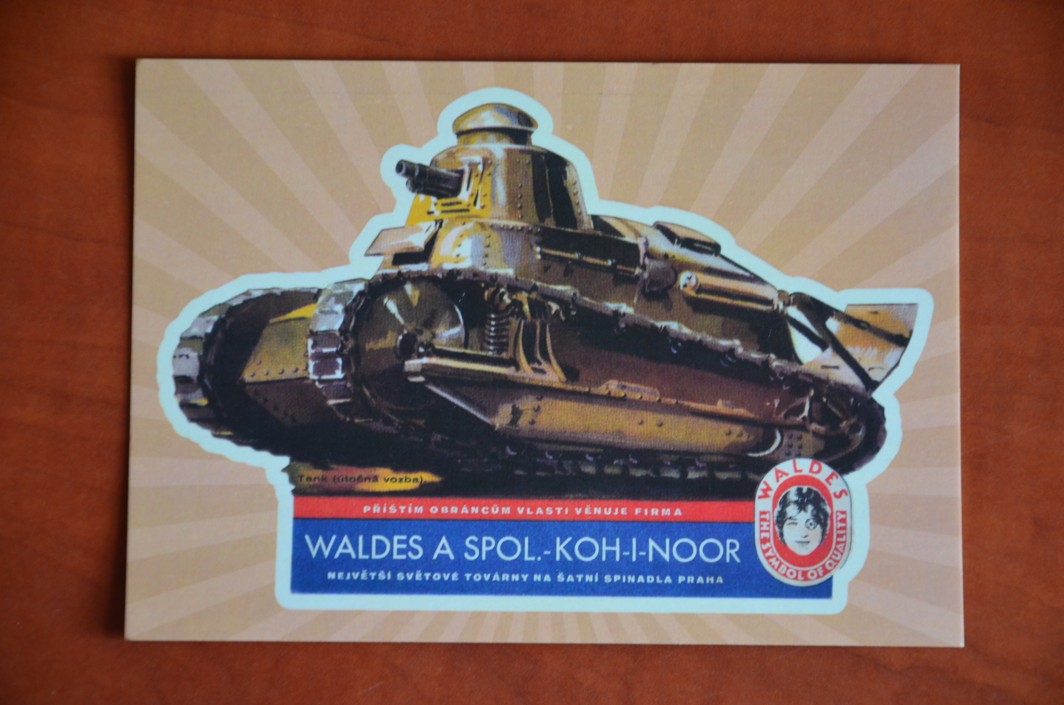 Tank (útočná vozba) WALDES A SPOL. - KOH-I-NOOR továrny na šatní spinadla Praha reklama armáda