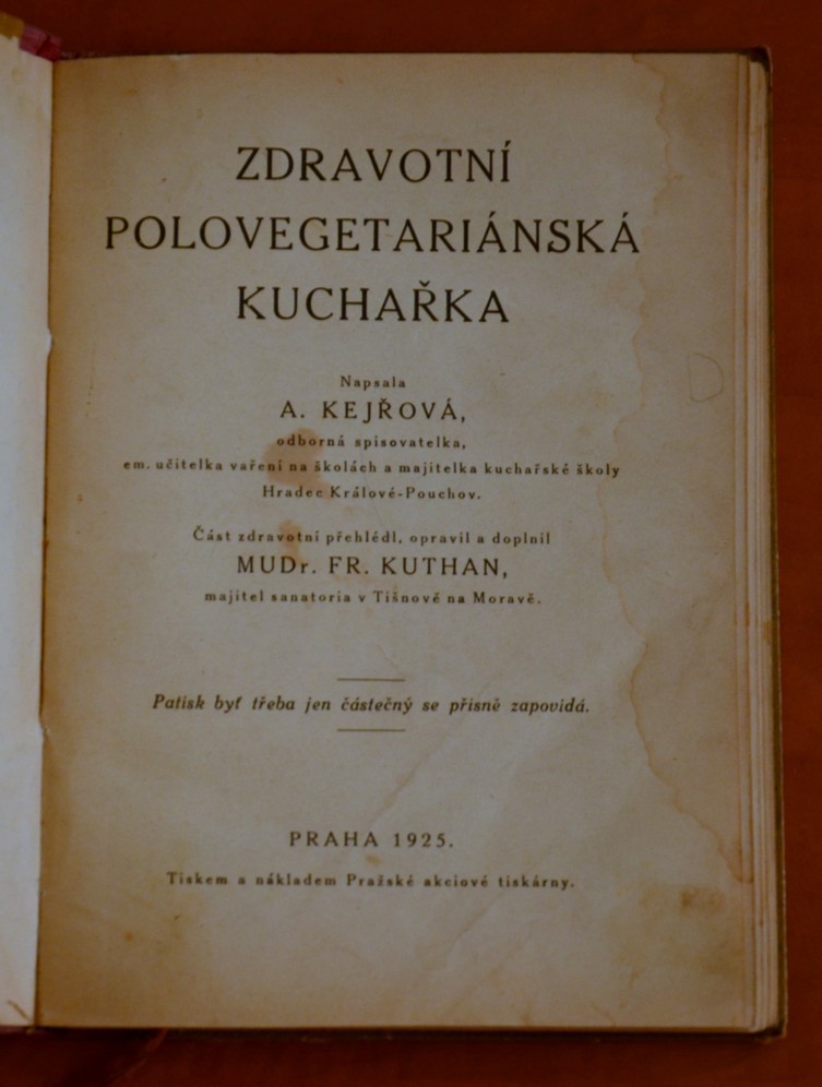 ZDRAVOTNÍ POLOVEGETARIÁNSKÁ KUCHAŘKA - A. Kejřová (r. vyd. 1925)